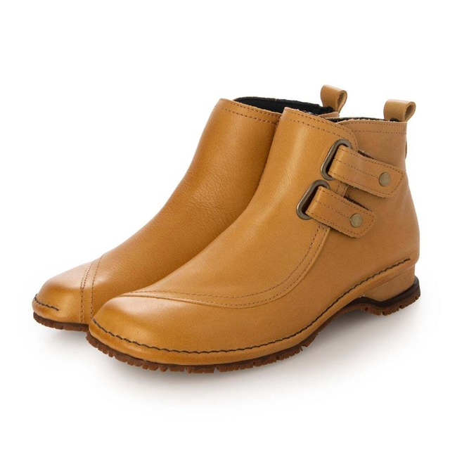 Millasports カジュアルコンフォートショートブーツキャメル23.5 ¥18,700(税込) 雨雪安心ソール柔らかレザーコンフォートショートブーツ3E 本革 2.5cmヒール雨雪対応ソール