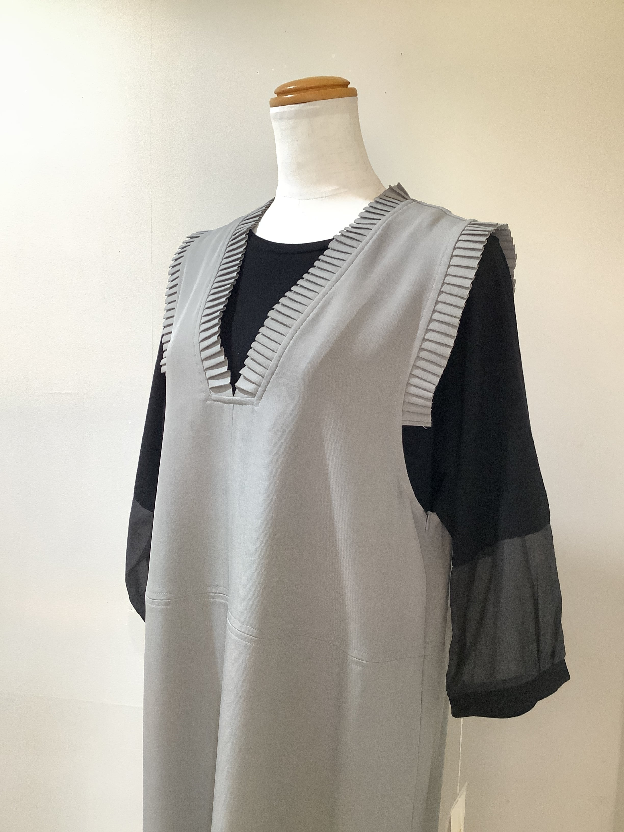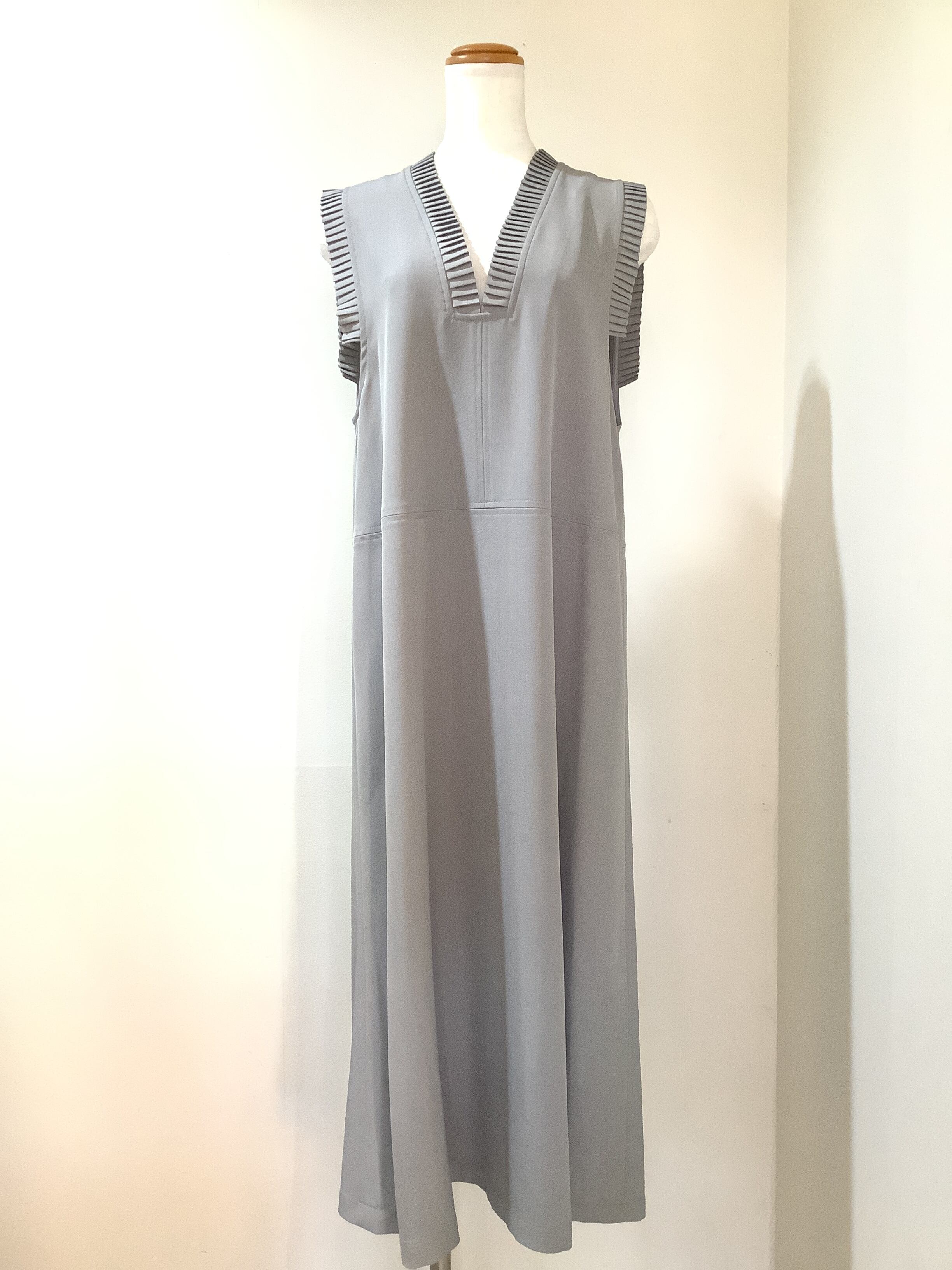 グレージュVネックノースリワンピース38